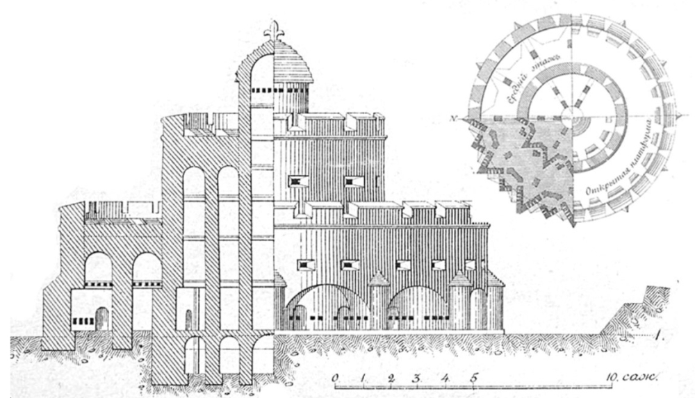 2. Нижче стаття Ігоря та Ольги Окончено, яку вперше було опубліковано ось тут 3 липня 2025 р. Максиміліанські вежі Львівської цитаделі − унікальний приклад фортифікаційного мистецтва XIX століття Максиміліанські вежі Львівської цитаделі є унікальною спадщиною австрійського фортифікаційного мистецтва XIX століття. Науковці Ігор та Ольга Оконченко розповідають про їхні особливості. Фото: bigmarkin Комплекс оборонних укріплень Львівської цитаделі − видатний зразок європейської фортифікаційної архітектури середини XIX ст., який дійшов до нашого часу майже без змін. Збережені укріплення репрезентують останній період довгочасної фортифікації, коли функціональні та конструктивні характеристики оборонних споруд перебували в тісному взаємозв'язку з досконалістю та естетичністю рішення. Це приклад, коли архітектор-фортифікатор послуговувався не лише практичним задумом, а й замислювався над красою, яка відображалася в геометричній досконалості, високому професійному рівні мурування та каменярської роботи, в увазі до вибору стилістики деталей, у якості застосованих матеріалів. У цій публікації висвітлена специфіка мілітарної архітектури Львівської цитаделі та приклади аналогічних укріплень на теренах Європи. Рис. 1. Північно-східна велика Максиміліанська вежа Львівської цитаделі. Фото авторів Система фортифікацій Львівської цитаделі Фортифікації Львівської цитаделі є показовим прикладом одного з ключових етапів розвитку фортифікацій нового часу у ХVІІІ−ХІХ ст. Характерними рисами нового підходу у воєнному мистецтві цього періоду стало посилення вогневих та відпірних можливостей укріплень, розташованих поза основним периметром фортеці, та збільшення саме активної оборони. Ключове значення надавалося не надійності стін та вдалому розташуванню мілітарного об'єкта, а силі фортечної артилерії, завданням якої було перемістити зону бойових дій подалі від фортець. Відомий французький інженер Марк Рене де Монталамбер у ХVІІІ ст. запропонував, замість неперервних ліній укріплень, влаштовувати пояси з окремих оборонних споруд чи фортів, що дозволяло покривати артилерійським вогнем великі території навколо фортеці. Монталамбер передбачив майбутній розмах битв та грандіозні об'єми армій, тому його ідеї залишались актуальним впродовж ХІХ ст. Інженер зазначав, що вал можна зробити навіть з паперу за умови, що з нього стрілятиме достатня кількість гармат таким чином, щоби ворог під час облоги не міг розмістити жодної своєї гармати в зоні передполя фортеці. Задум Львівської цитаделі базується насамперед на концепції Монталамбера, яка була пристосована до нових умов. Монталамбер розробив систему фортів із полігональним плануванням, які пропонував підсилювати артилерійськими вежами. У полігональній системі використовували різні елементи, відомі ще з попередніх систем. Вал, редут і капонір були основними складовими, з яких формувалися як периметр фортець, так і форти, що оточували фортецю. Вал, із якого формувався периметр, міг бути прямолінійним або з заломами. Периметр ядра полігональної фортеці чи форту легко адаптувався до різноманітних умов місцевості. Рис. 2. Схематичне зображення вежі Монталамберга з праці Ц. Кюі 1897 р. Вежі Монталамбера − це круглі в плані кам'яні споруди з основою у формі зіркоподібного штерн-шанця, фор
